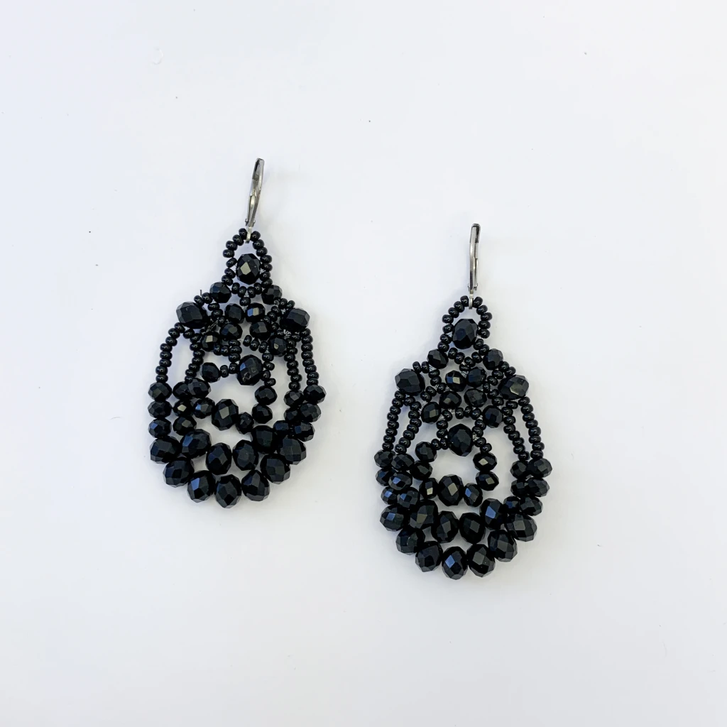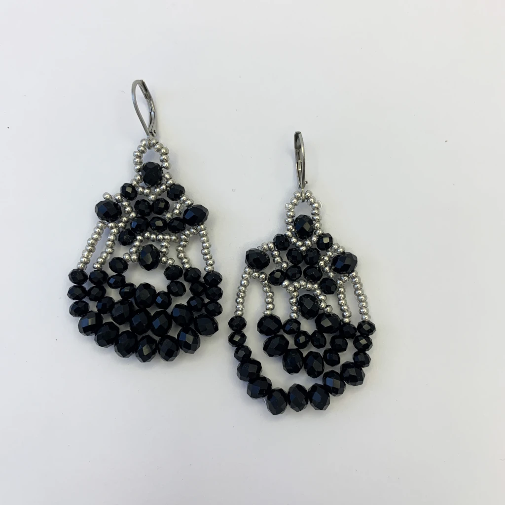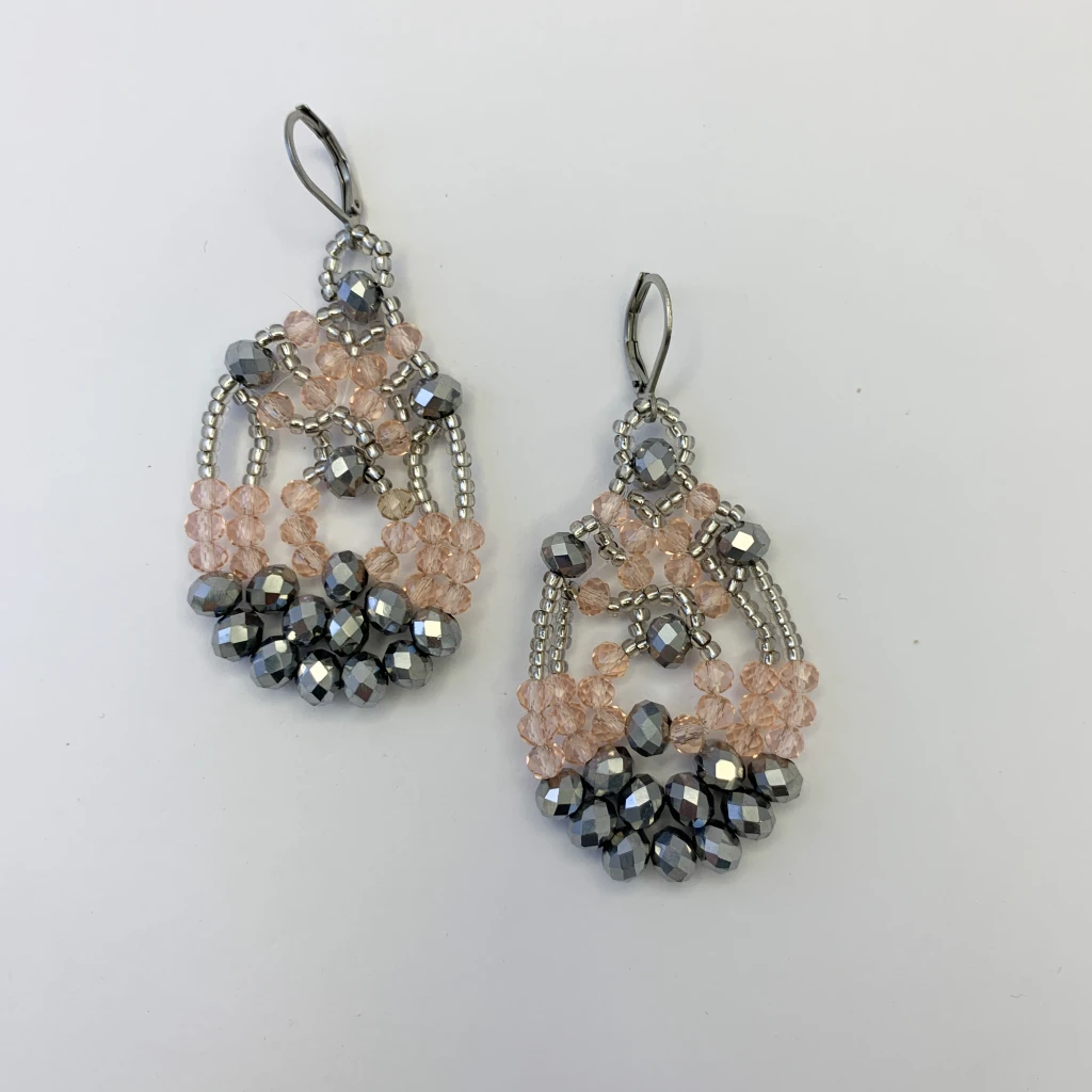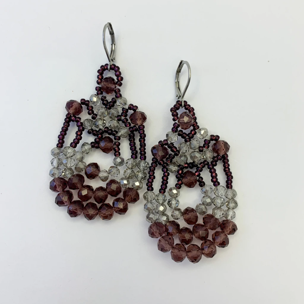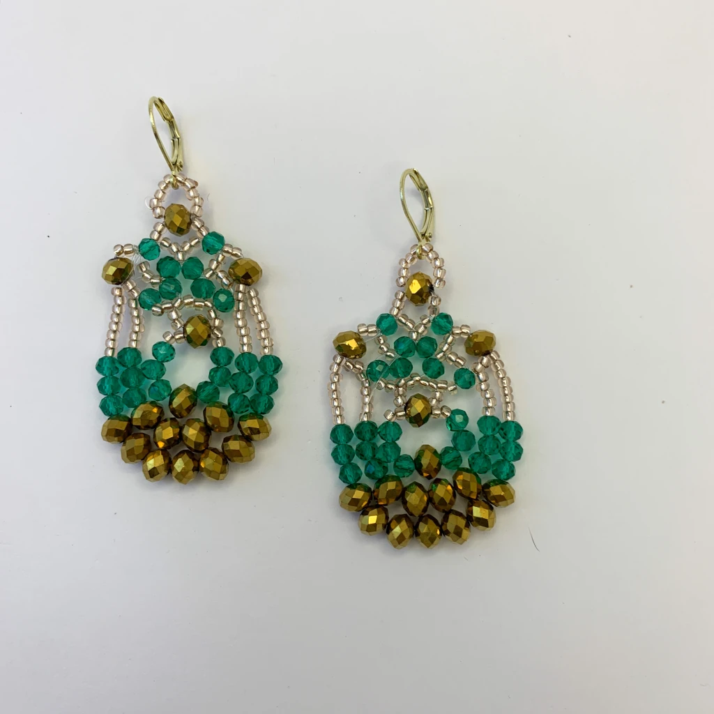 Aros artesanales, realizados completamente a mano, combinando cristales y mostacillas calibradas en una amplia variedad de colores.