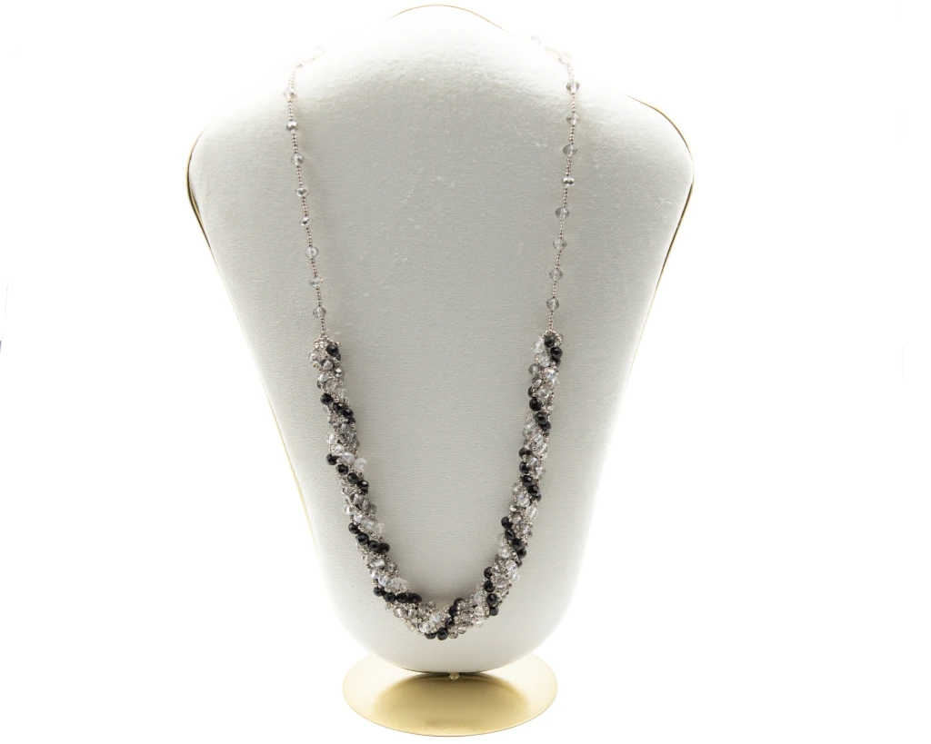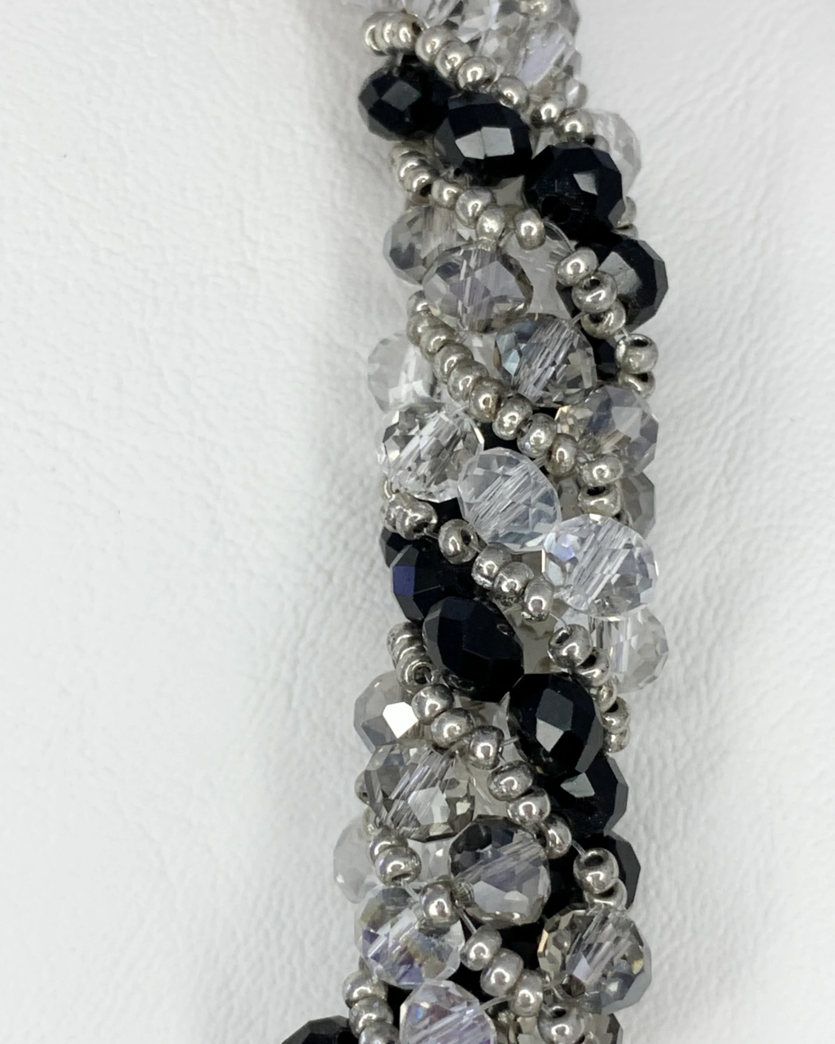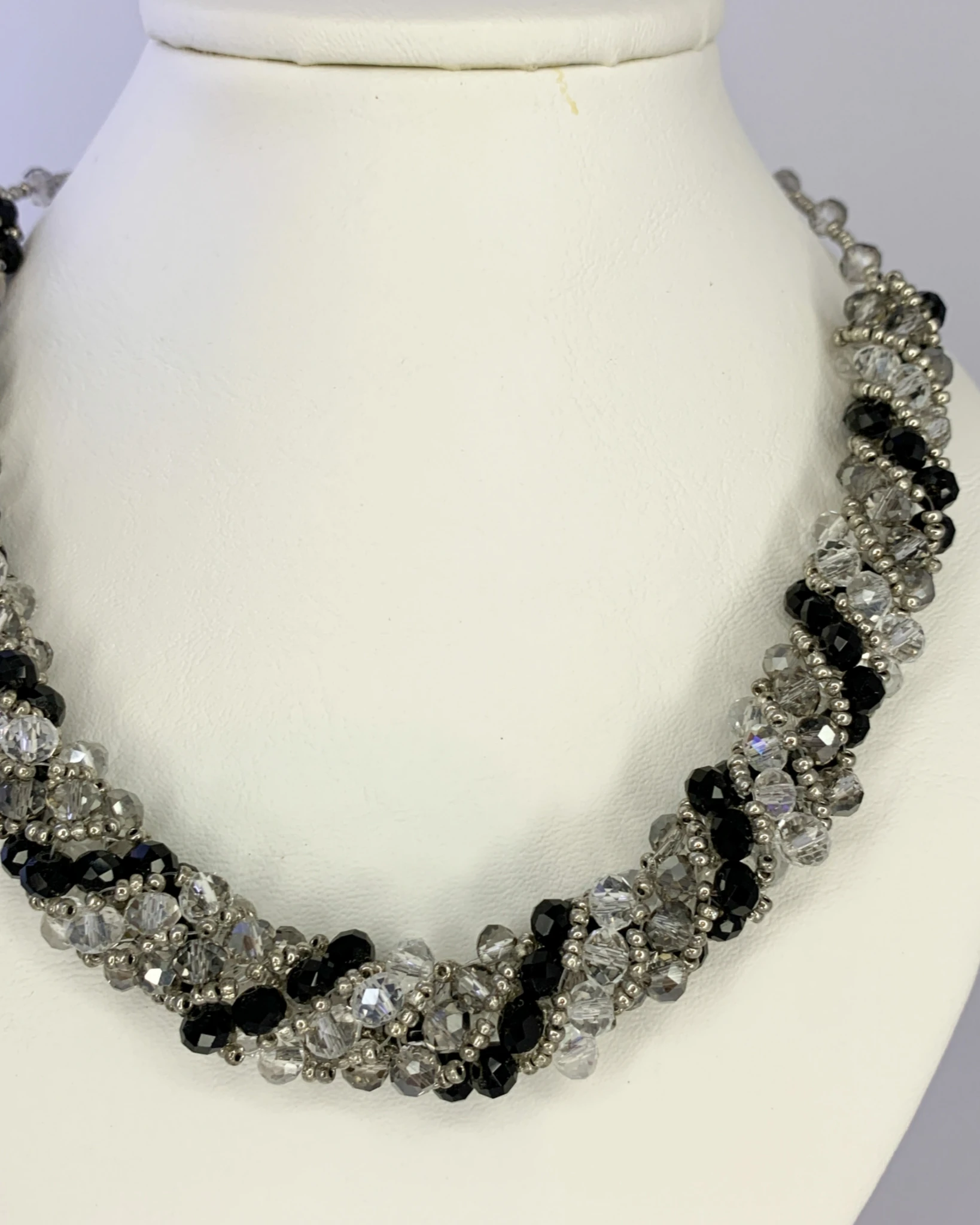Una pieza delicada y elegante, realizada completamente a mano con cristales y mostacillas calibradas de alta calidad.