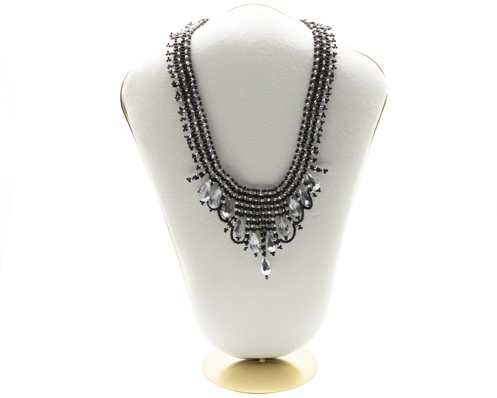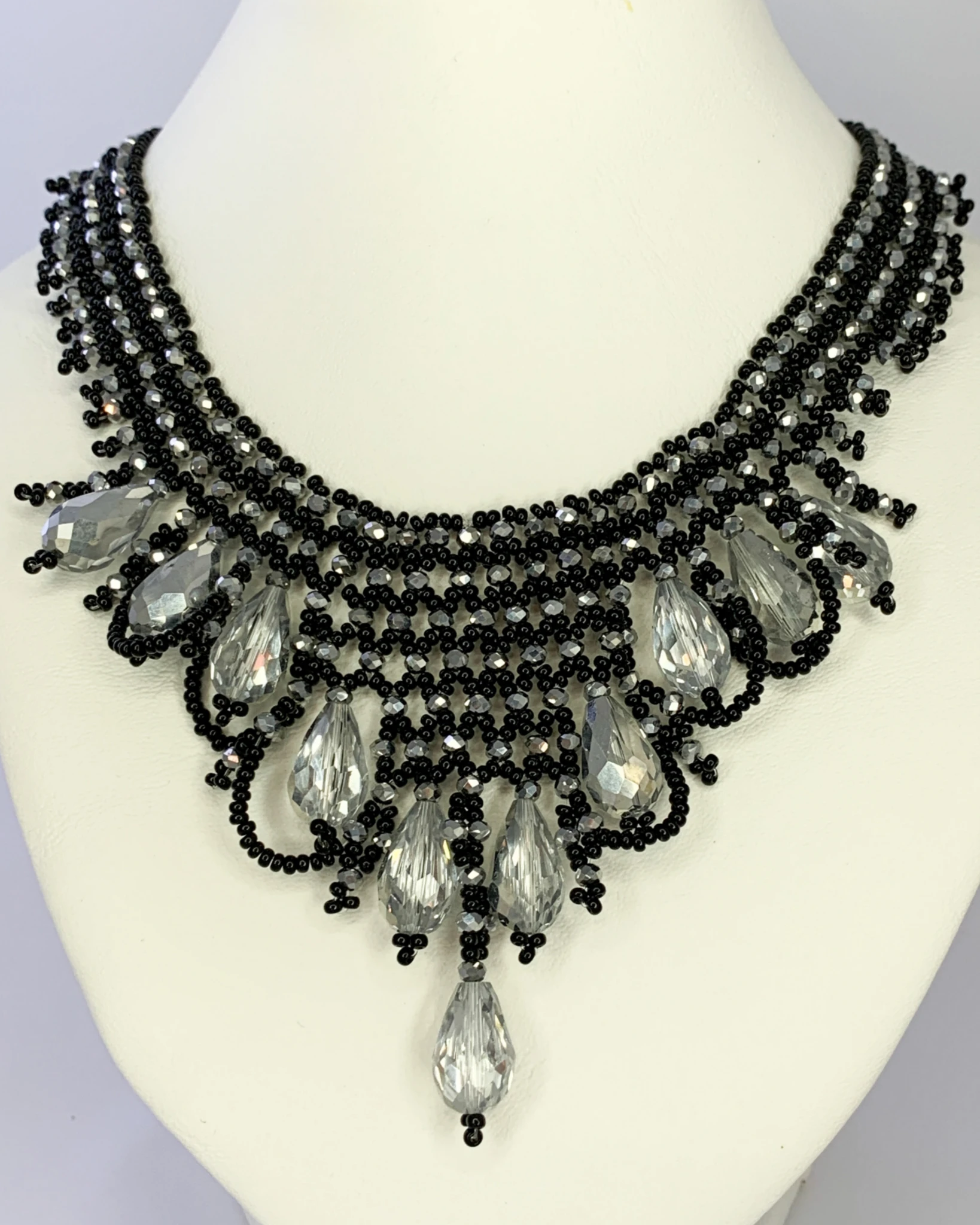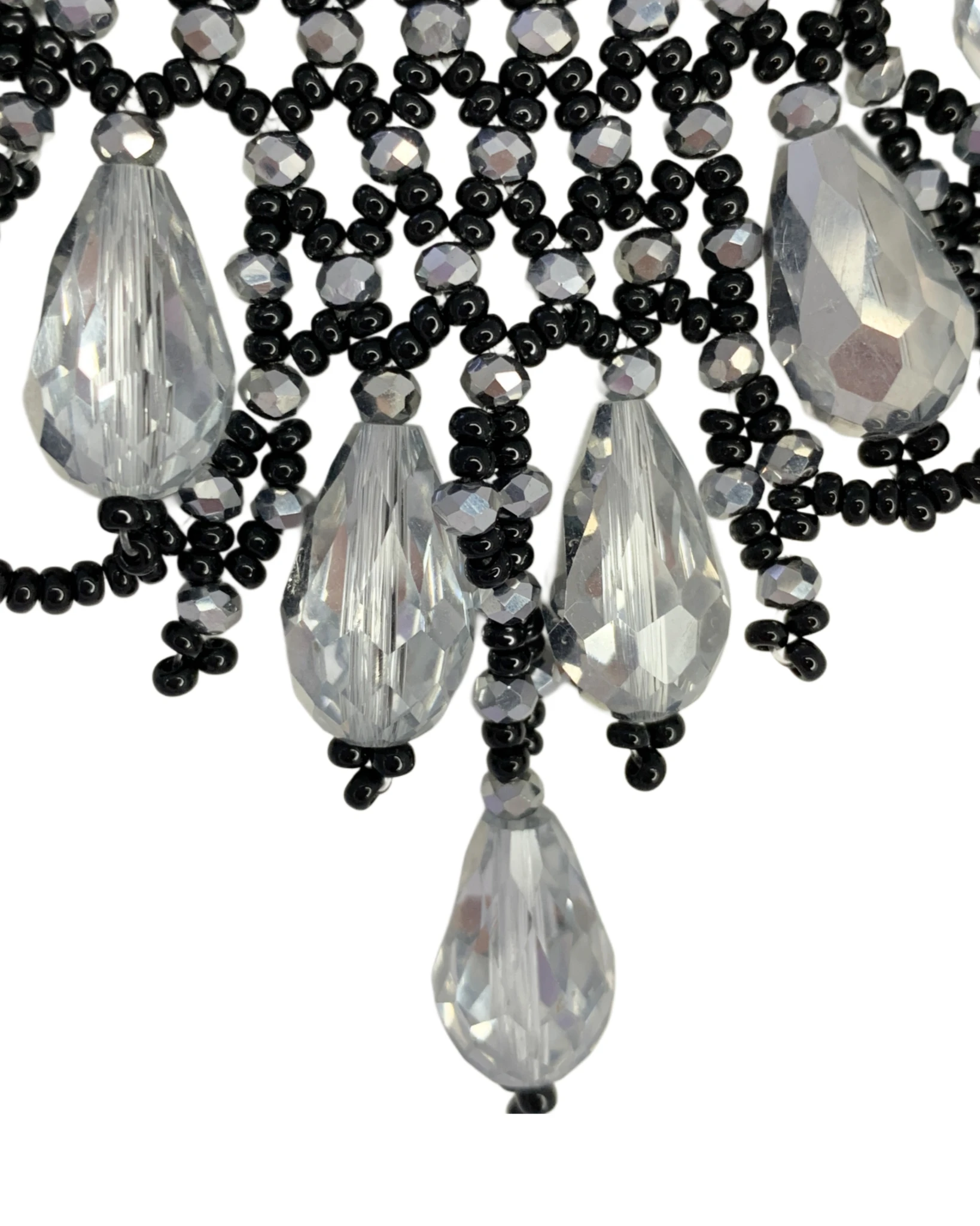 Una pieza delicada y elegante, realizada completamente a mano con cristales y mostacillas calibradas de alta calidad.