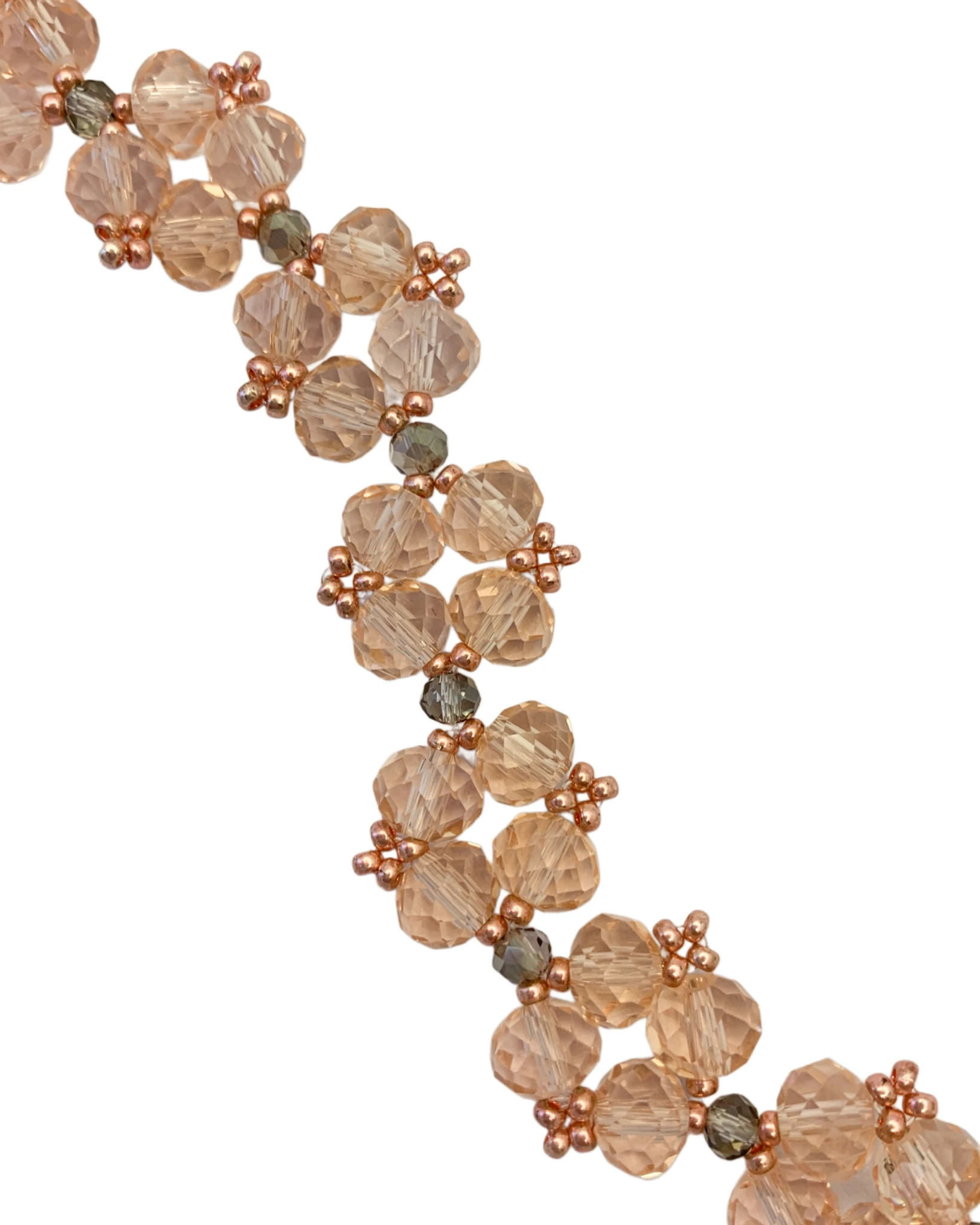 Elaborados a mano con cristales y mostacillas calibradas, estos diseños aportan brillo y sofisticación a cualquier look.