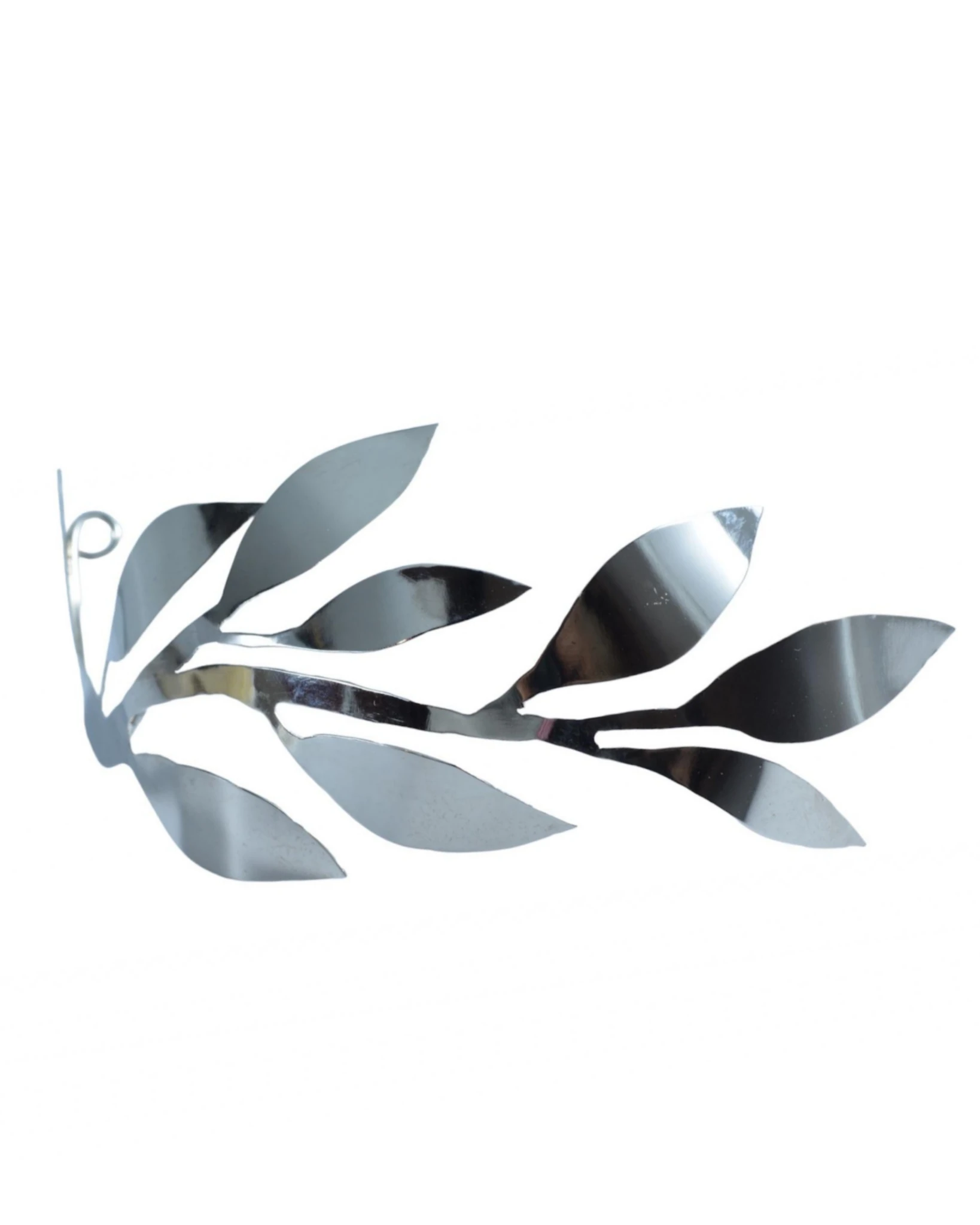 Su diseño orgánico, compuesto por hojas delicadamente modeladas, está pensado para realzar importantes peinados con un toque sofisticado y natural. El acabado final fue realizado con un fino baño en Niquel Brilloso, aportando protagonismo.