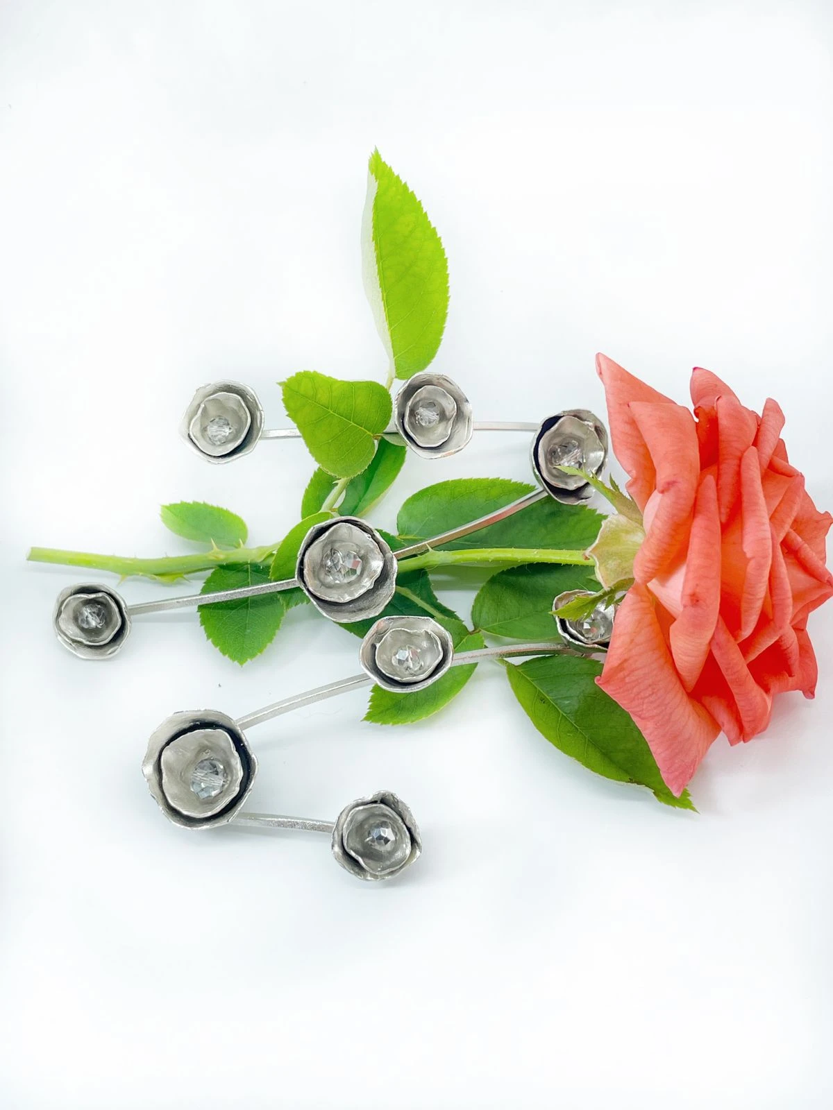 Podés colocarlas juntas o por separado, adaptándolas al peinado que elijas, ya sea recogido o semirrecogido.