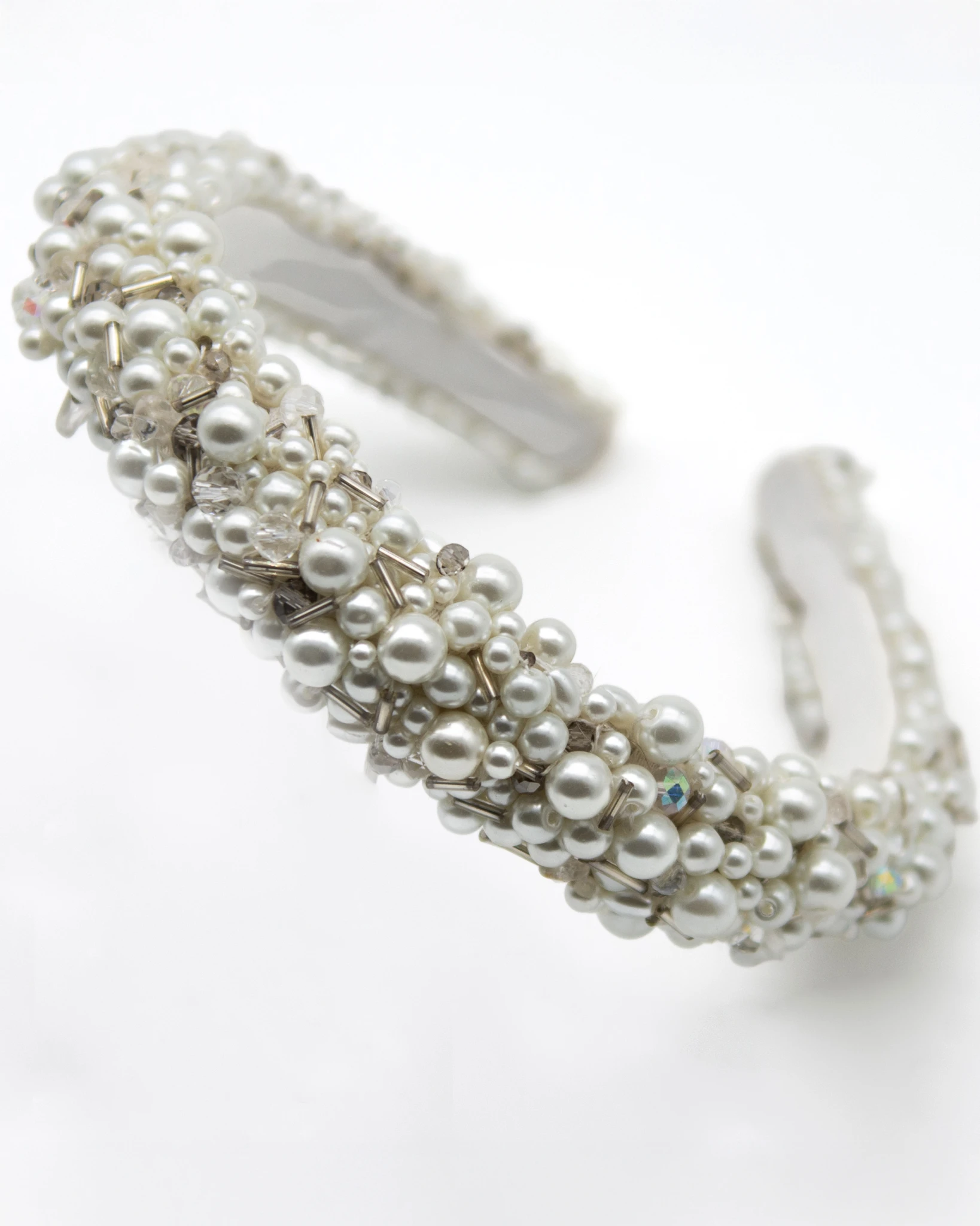 Diadema clásica "Juno" en Perlas, canutillos, cristales