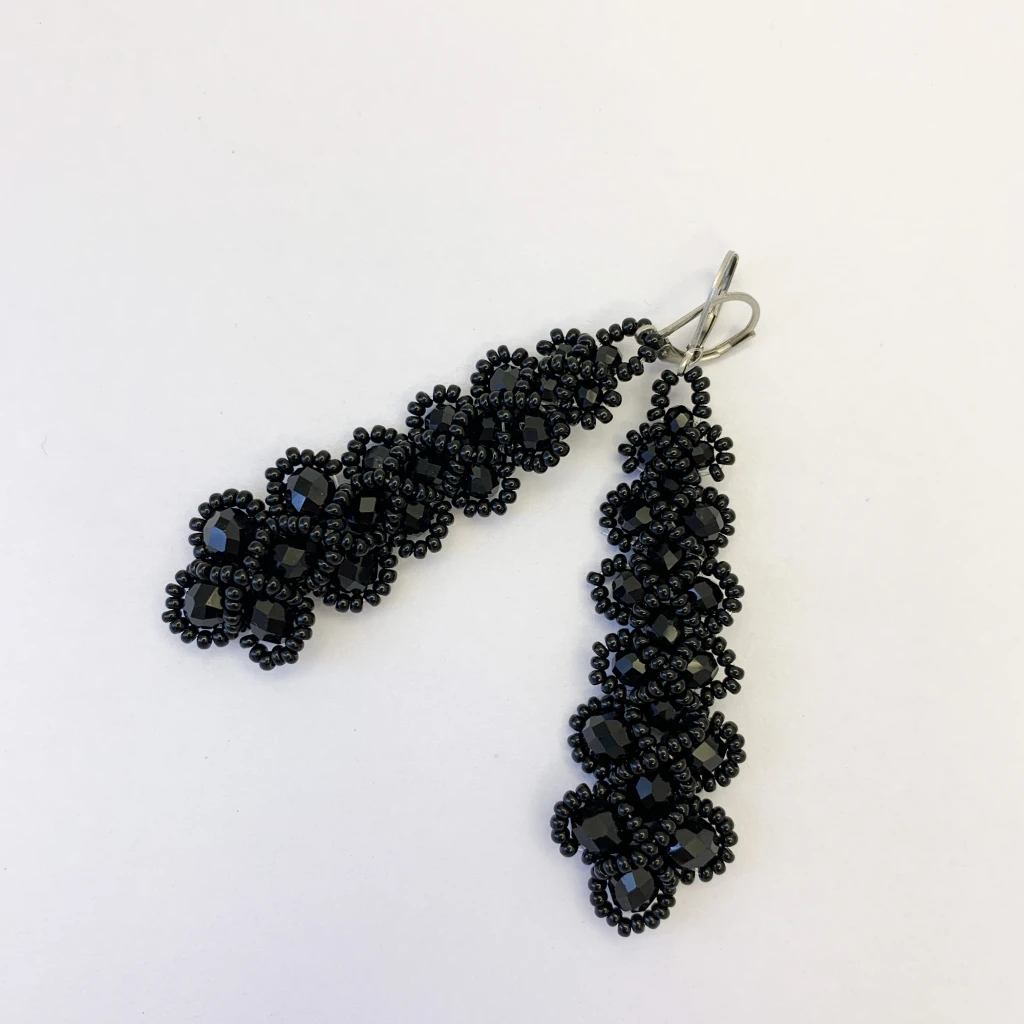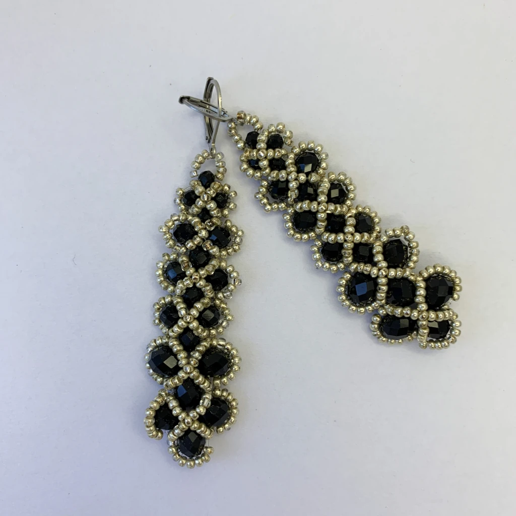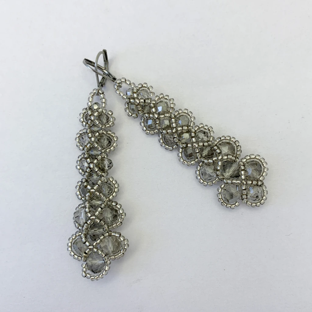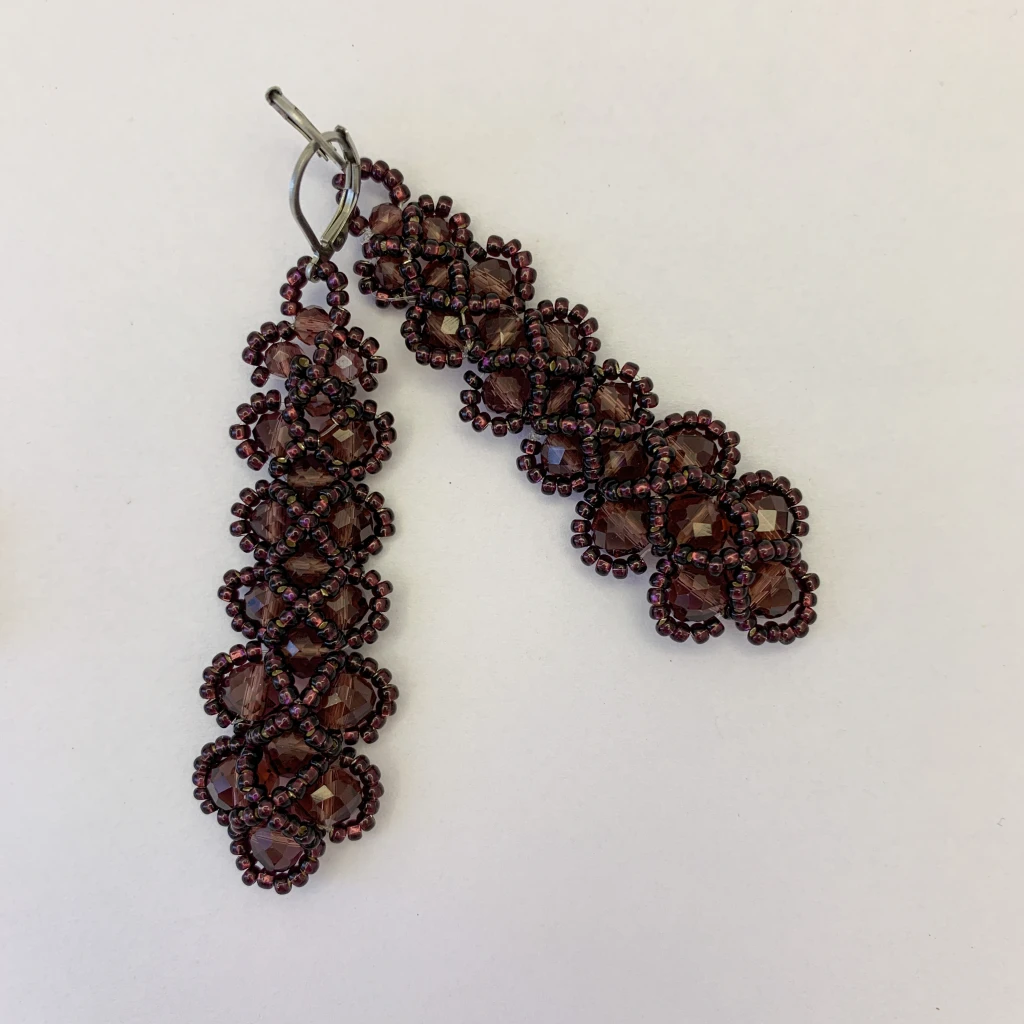 Aros artesanales, realizados completamente a mano, combinando cristales y mostacillas calibradas en una amplia variedad de colores.